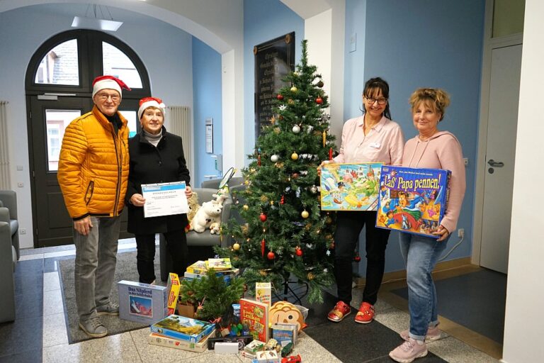 Da staunten die Mitarbeiter der Klinik für Kinder- und Jugendpsychiatrie, Psychotherapie und Psychosomatik auf dem Weinberg in Merseburg, als am Freitag, 19.12.2025 zwei freundliche Weihnachtsleute